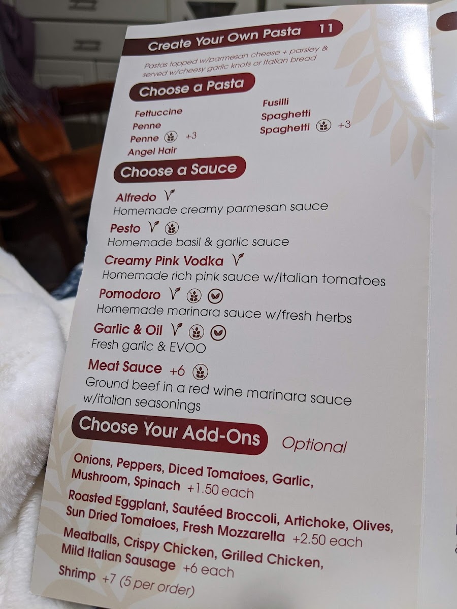 Choose Penne, Spaghetti, Fettuccine or Fusilli